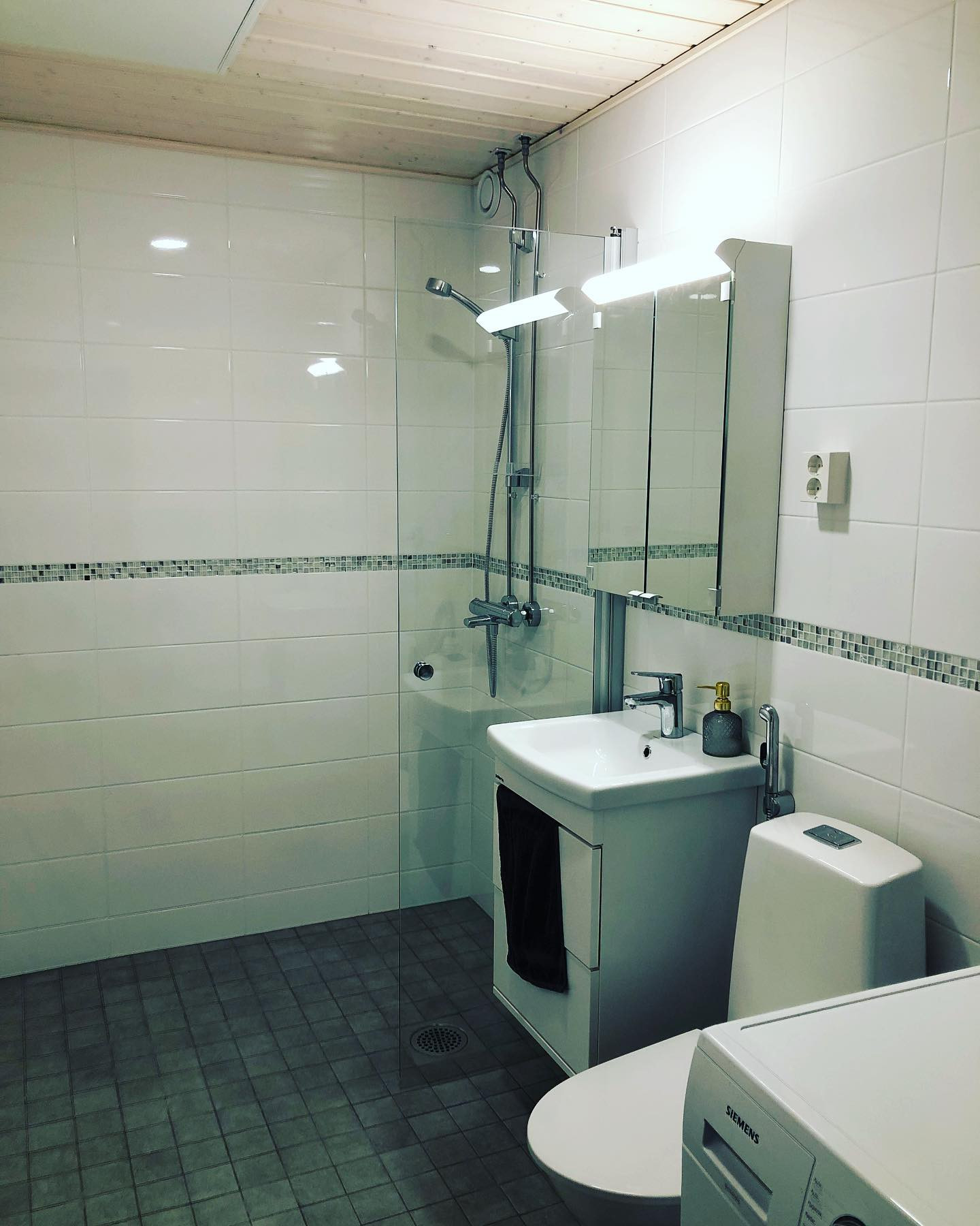 Pääsimme tekemään putkiremonttikohteeseen asiakkaan laatoitustyöt sekä huoneiston pintaremonttia. #remontti #kylpyhuone …